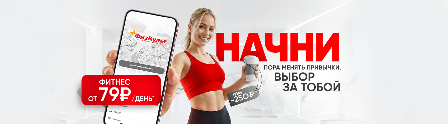 Фитнес в Физкульт всего от 79 рублей в день! Выгоднее чем чашка кофе за 250 рублей!